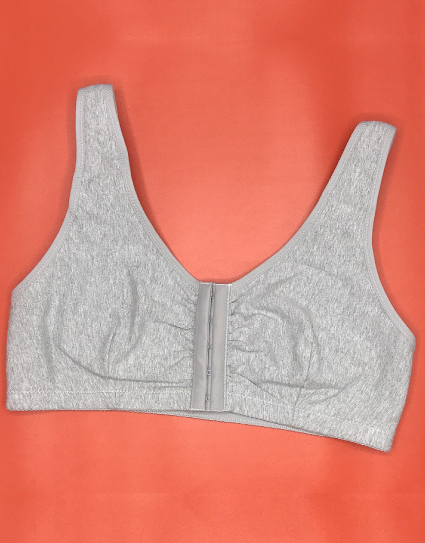 Baumwoll-Postoperativer BH mit Frontverschluss und Taschen – Grau