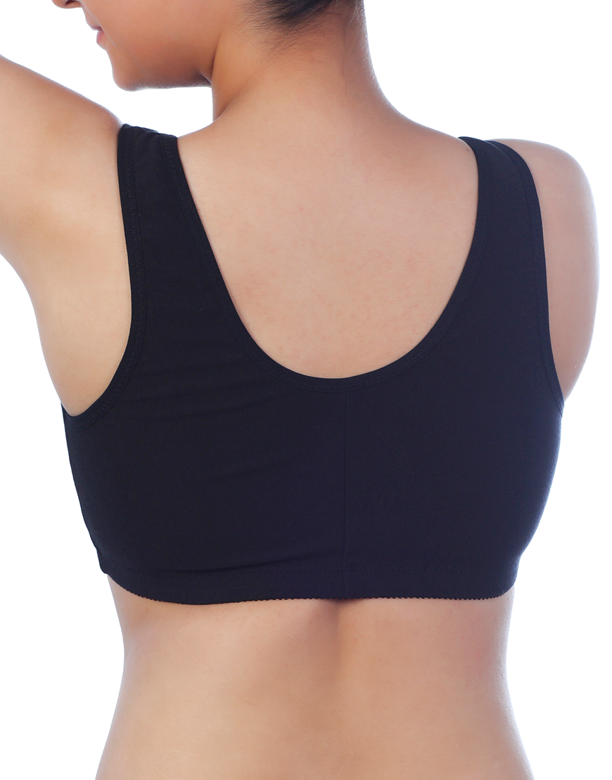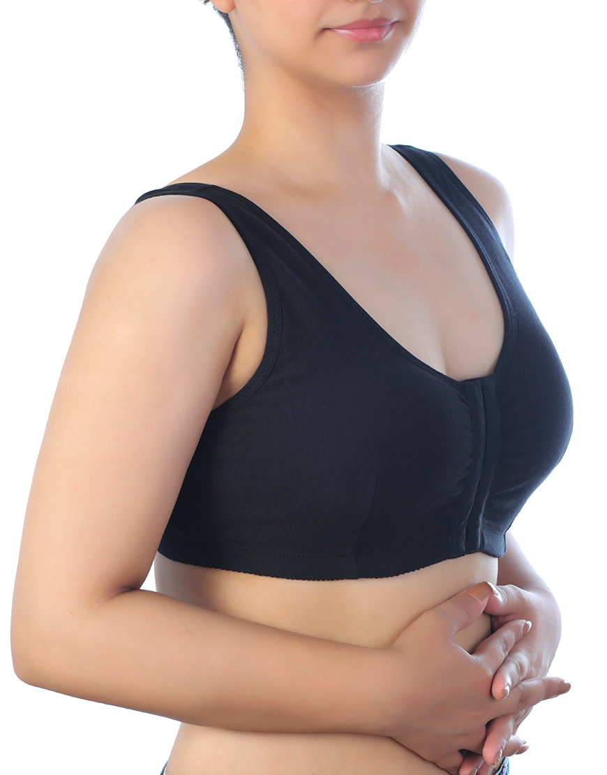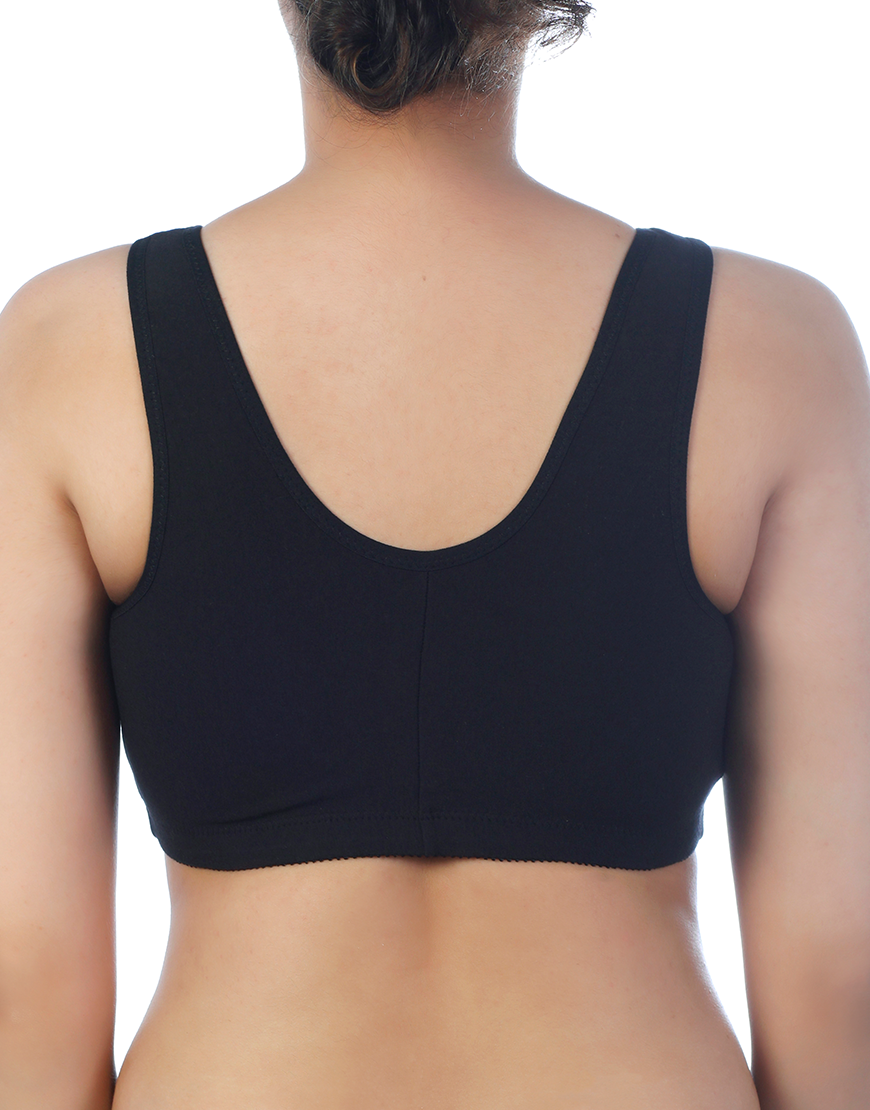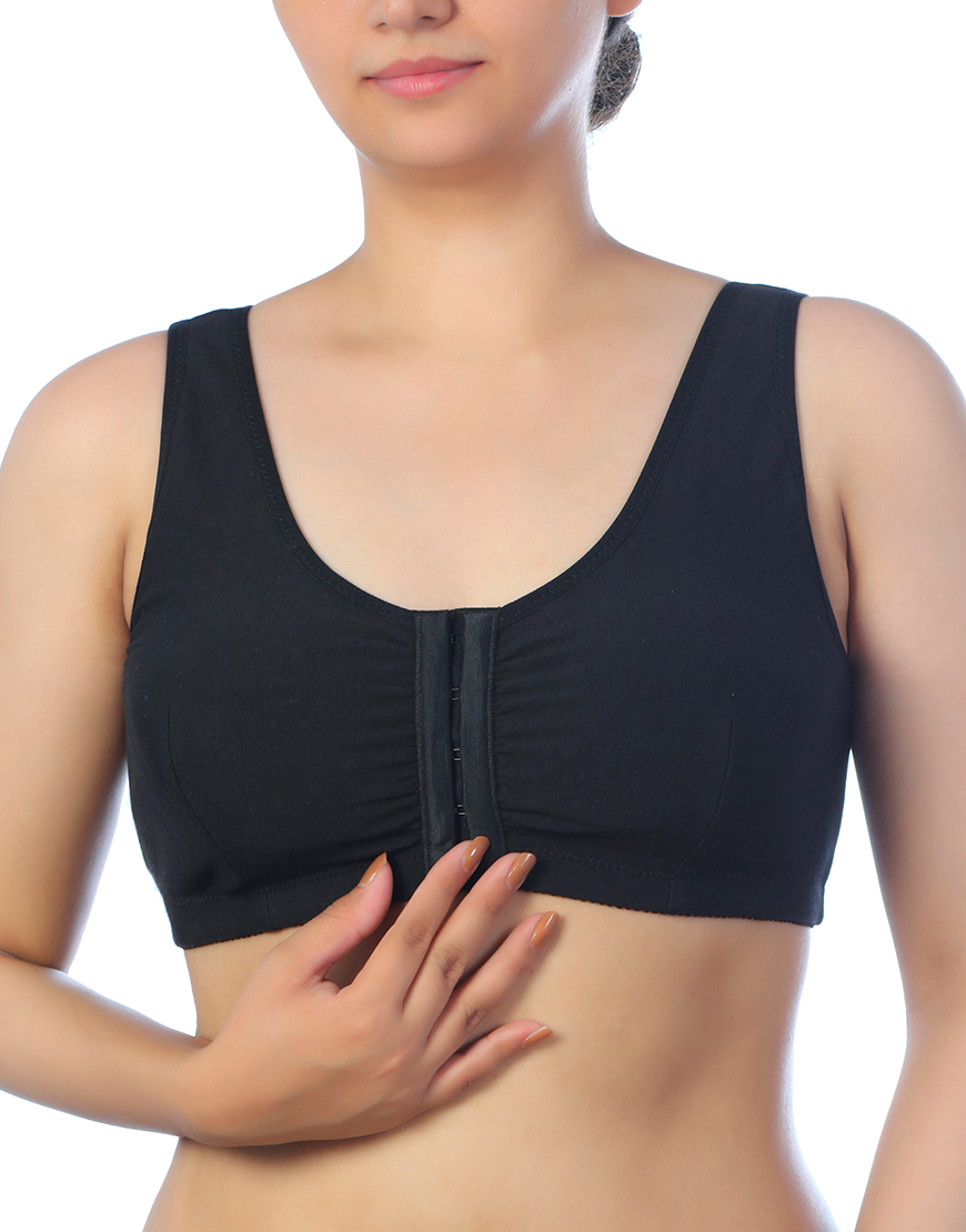 Baumwoll-Frontöffnung Slip-On Post-Operativer BH mit Taschen – Schwarz