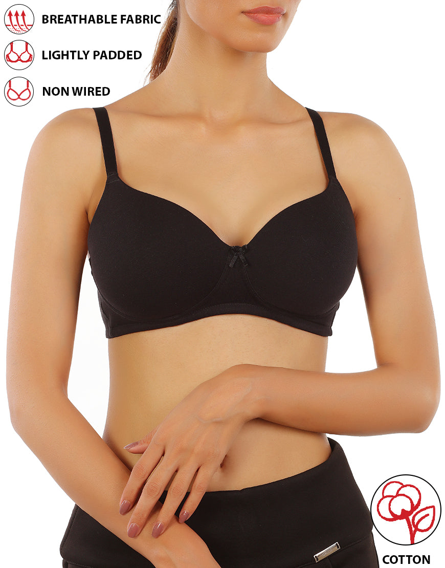 LOSHA Baumwoll-BH ohne Bügel, leicht gepolstert, T-Shirt-Stil – Schwarz