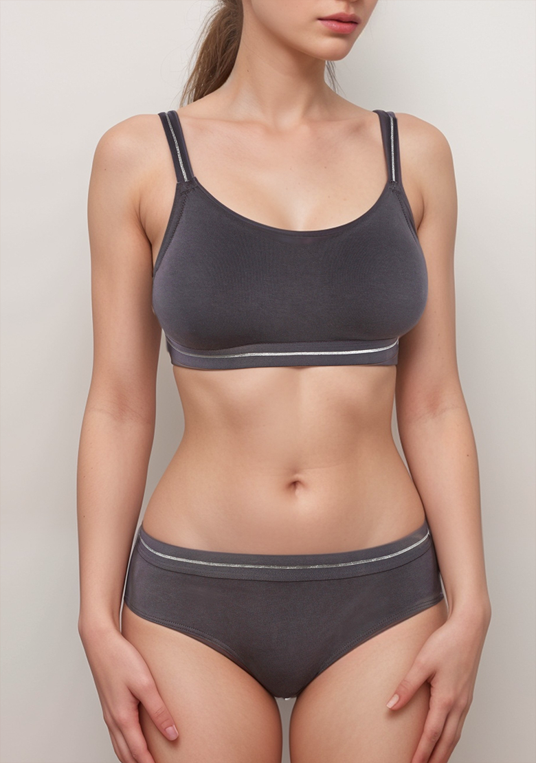 Doppellagiger Baumwoll-BH ohne Bügel mit Glitzer-Elastikbund – Grau