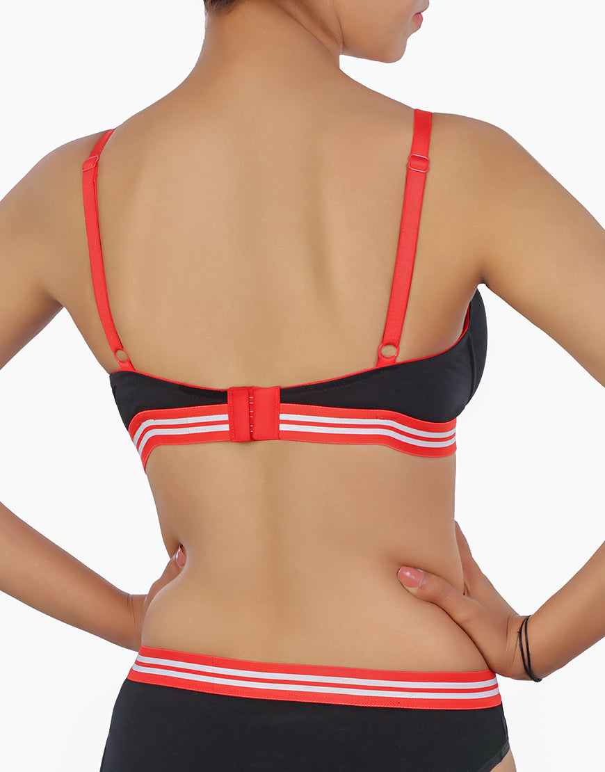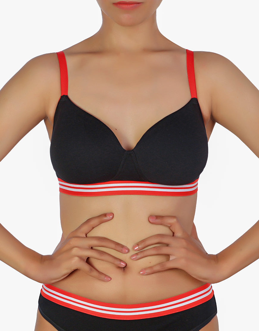 Leicht gepolsterter, bügelloser T-Shirt-BH mit gestreiftem Elastikbund – Schwarz