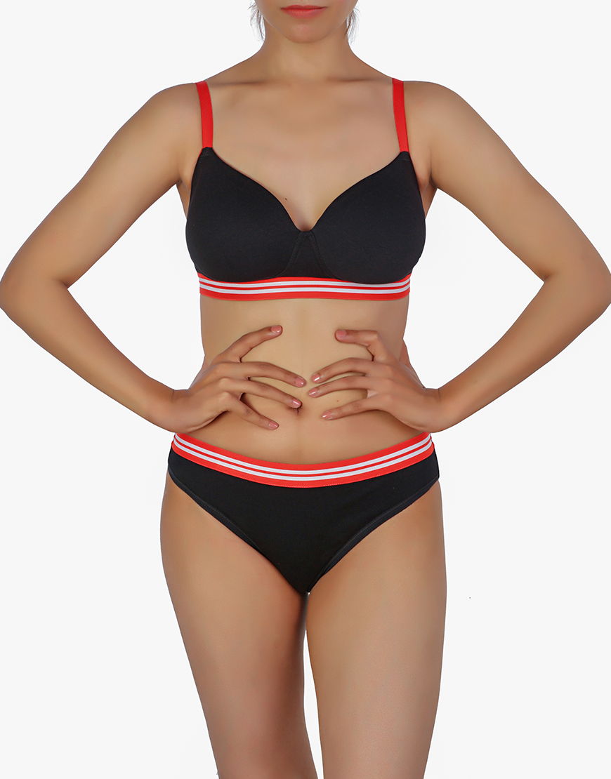 Leicht gepolsterter Nicht-Bügel T-Shirt BH mit passender Panty – Schwarz