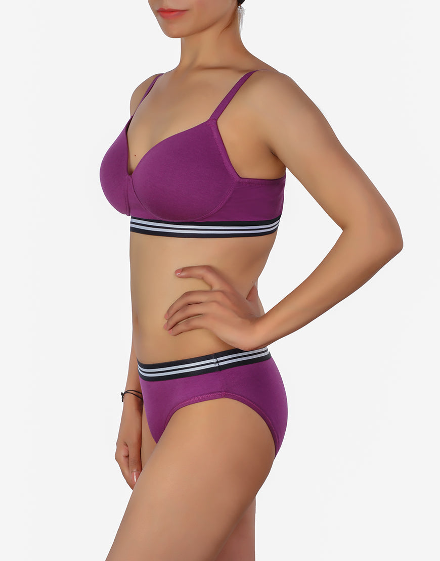 Leicht gepolsterter Nicht-Bügel T-Shirt BH mit passender Panty – Blau