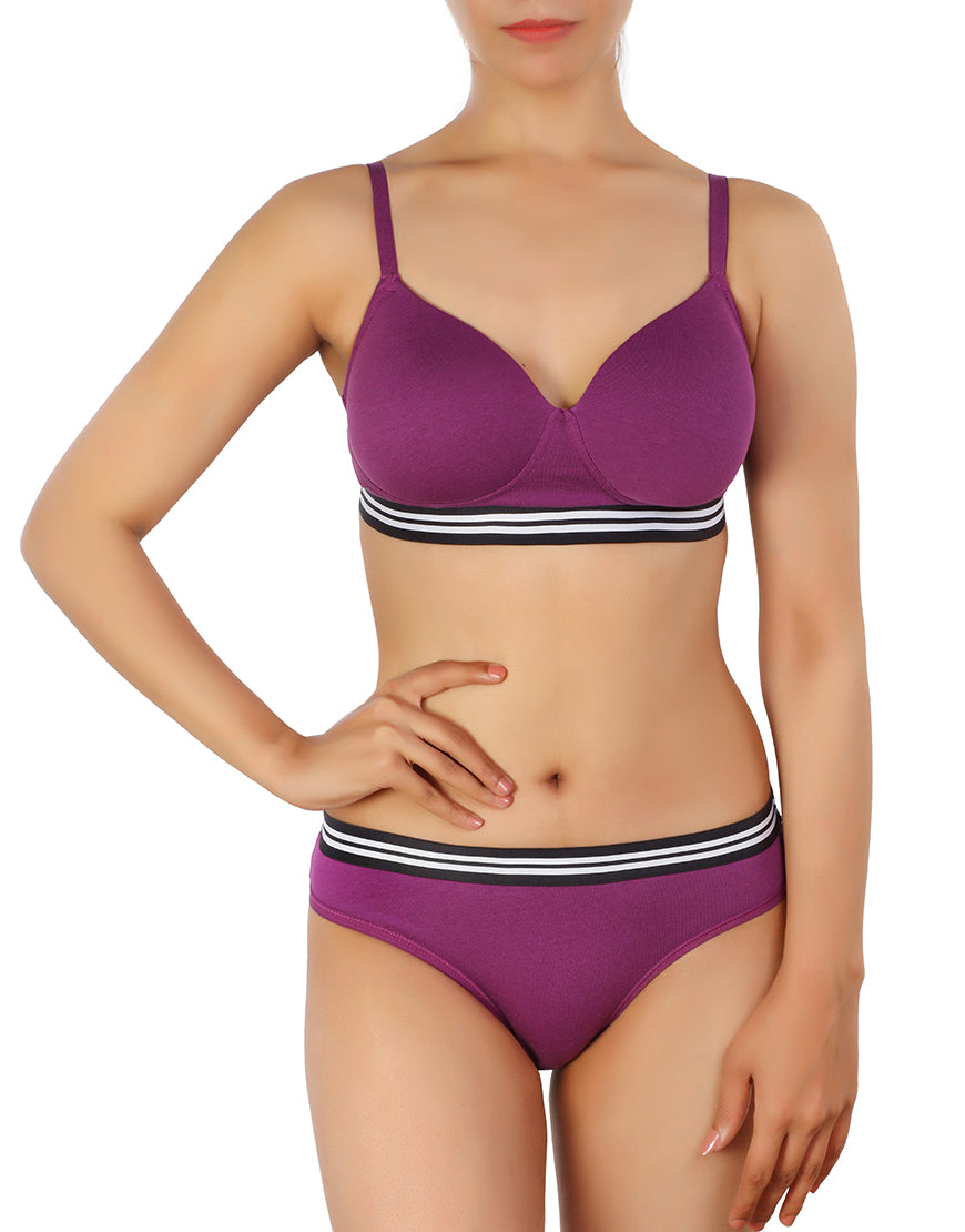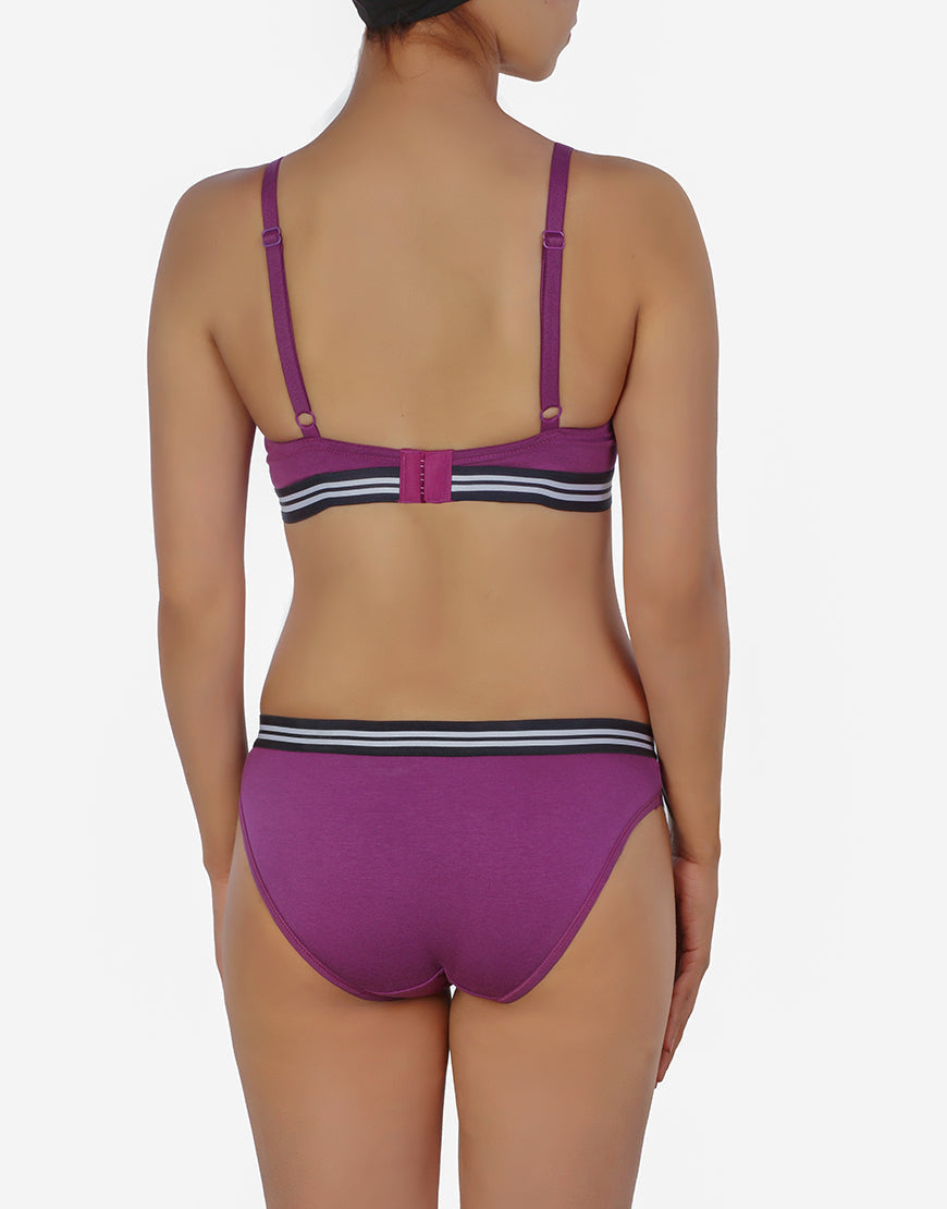 Leicht gepolsterter Nicht-Bügel T-Shirt BH mit passender Panty – Lila