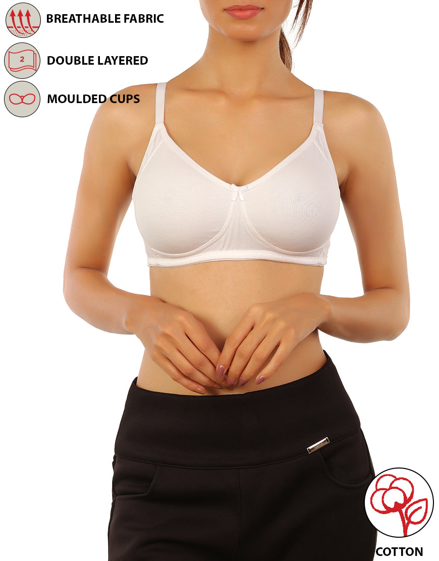 Baumwoll-BH ohne Bügel mit doppellagigem Stoff – Weiß