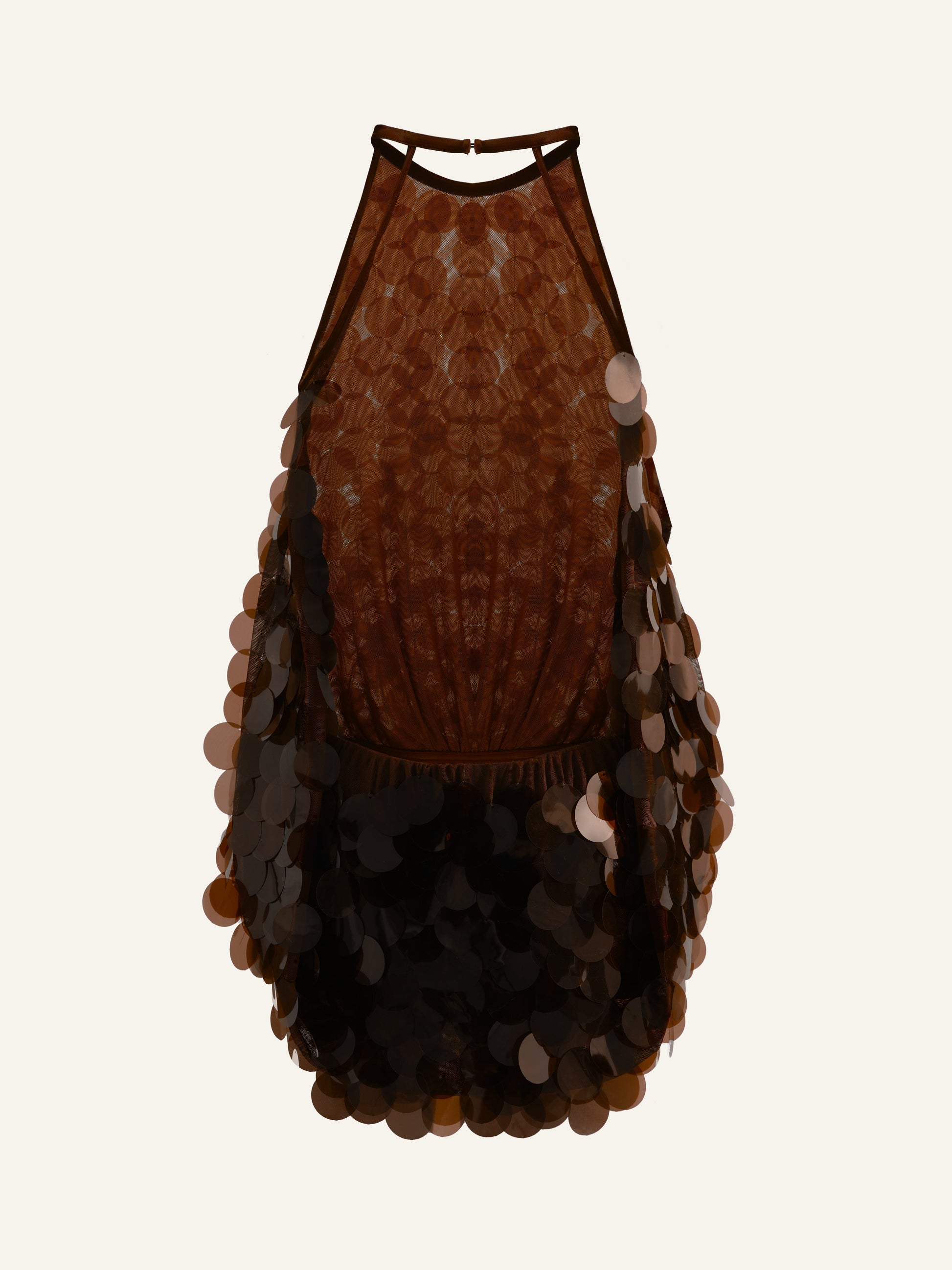 Tritt ins Rampenlicht mit Noxora, einem funkelnden Minikleid, das alle Blicke auf sich zieht. Mit seinem fließenden Paillettenstoff und dem offenen Rücken ist es gemacht für Rooftop-Partys, nächtliche Feiern und endlose Abende.